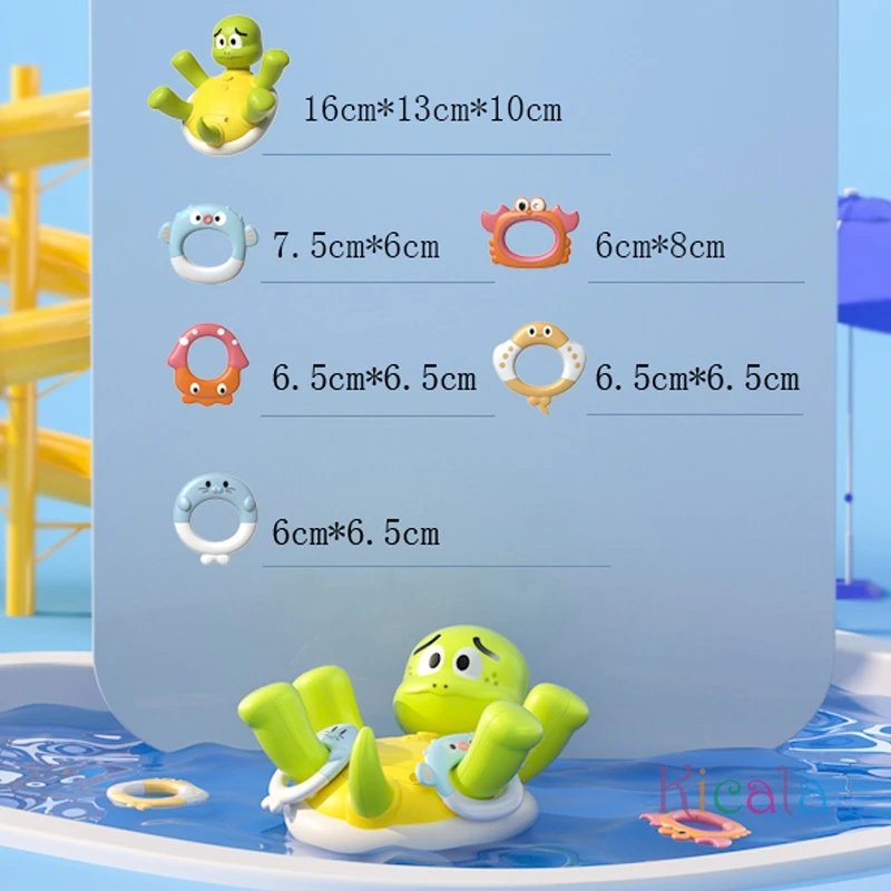 اللعبة مصنوعة من بلاستيك ABS آمن ومتين، خالية تمامًا من أي مواد كيميائية ضارة، ومناسبة للأعمار من حديثي الولادة إلى 6 سنوات. تصميمها اللطيف يضيف جو من السعادة للبانيو أو حوض السباحة، وتقدر الأم تستخدمها كأداة ترفيهية وتعليمية في نفس الوقت لتقوية حركة اليدين وتطوير مهارات الطفل الحسية.