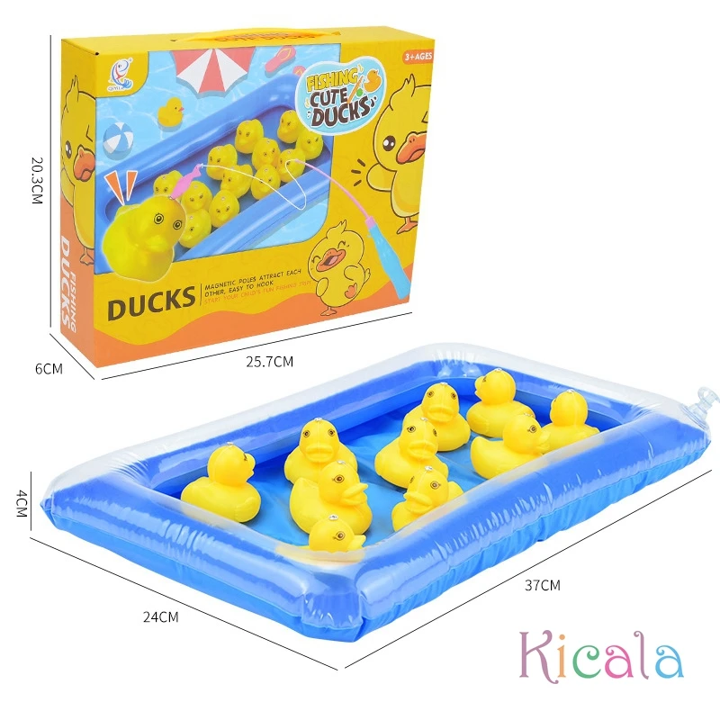 خلي أطفالك يعيشون تجربة الصيد الحقيقية مع بحيرة البط، اللعبة اللي تجمع بين المتعة والتعلّم! الفكرة بسيطة ومسلّية: انفخي البركة الصغيرة، عبّيها موية، وحطي البطات يطفن فوقها، بعدها يبدأ التحدي بالصيد باستخدام السنارات المغناطيسية. اللعبة تجي مع بركة قابلة للنفخ، 10 بطات لطيفة، سنارتين، شبكتين ومضخة هواء — يعني جاهزة للعب من أول لحظة!
