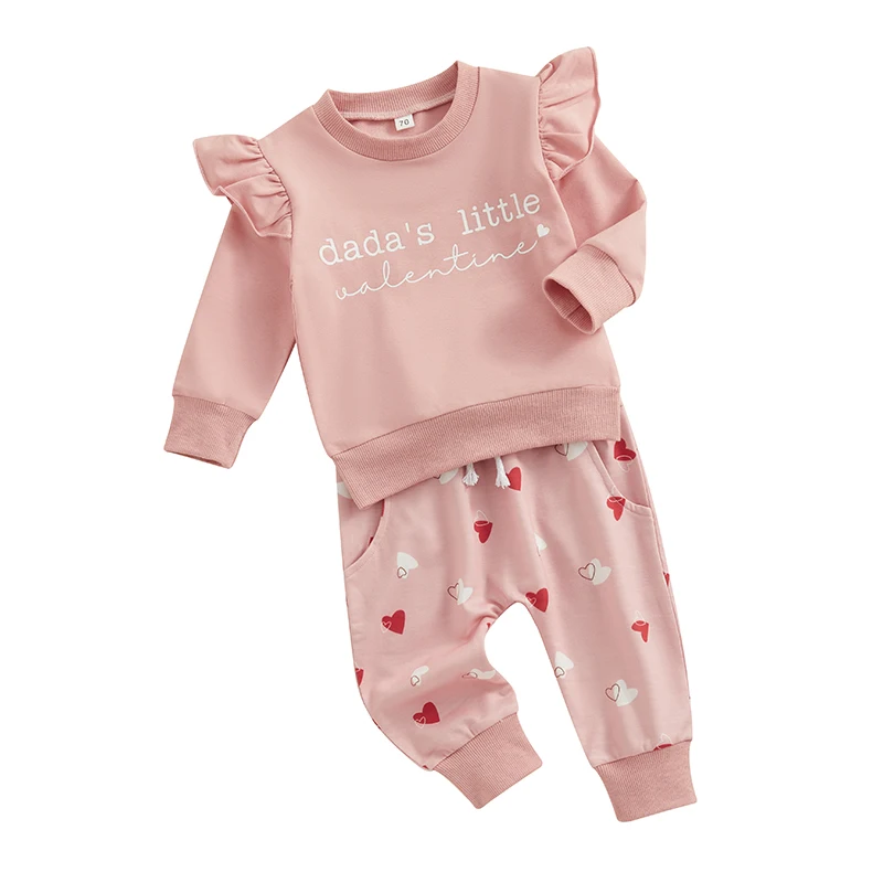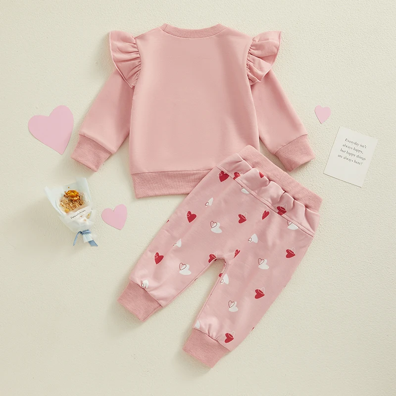 طقم بنات 2 قطعة عيد الحب – سويت شيرت مطبوع + بنطلون مطاطي